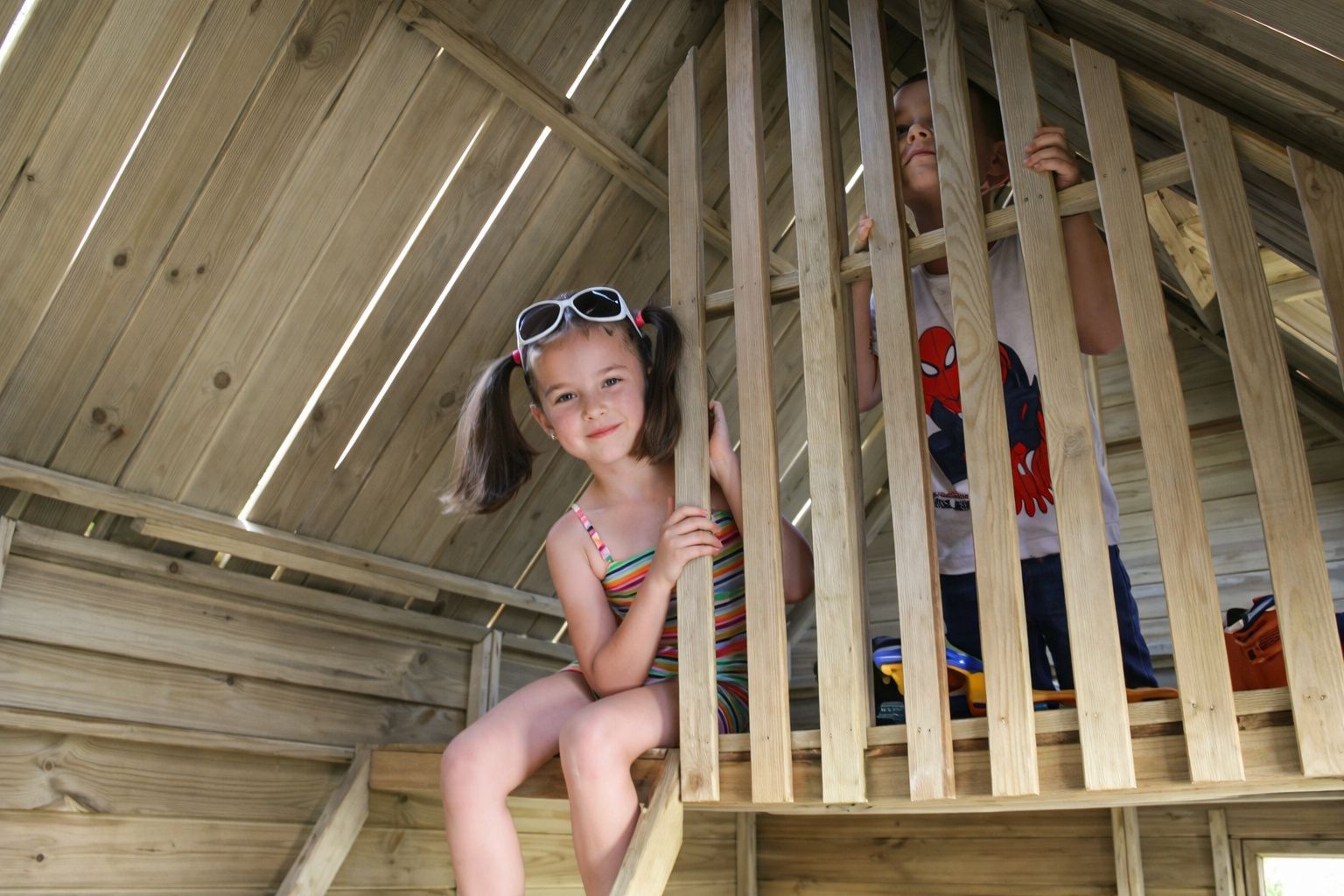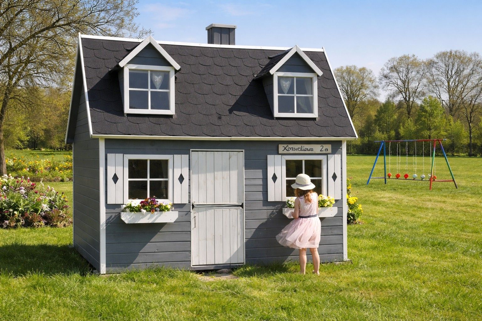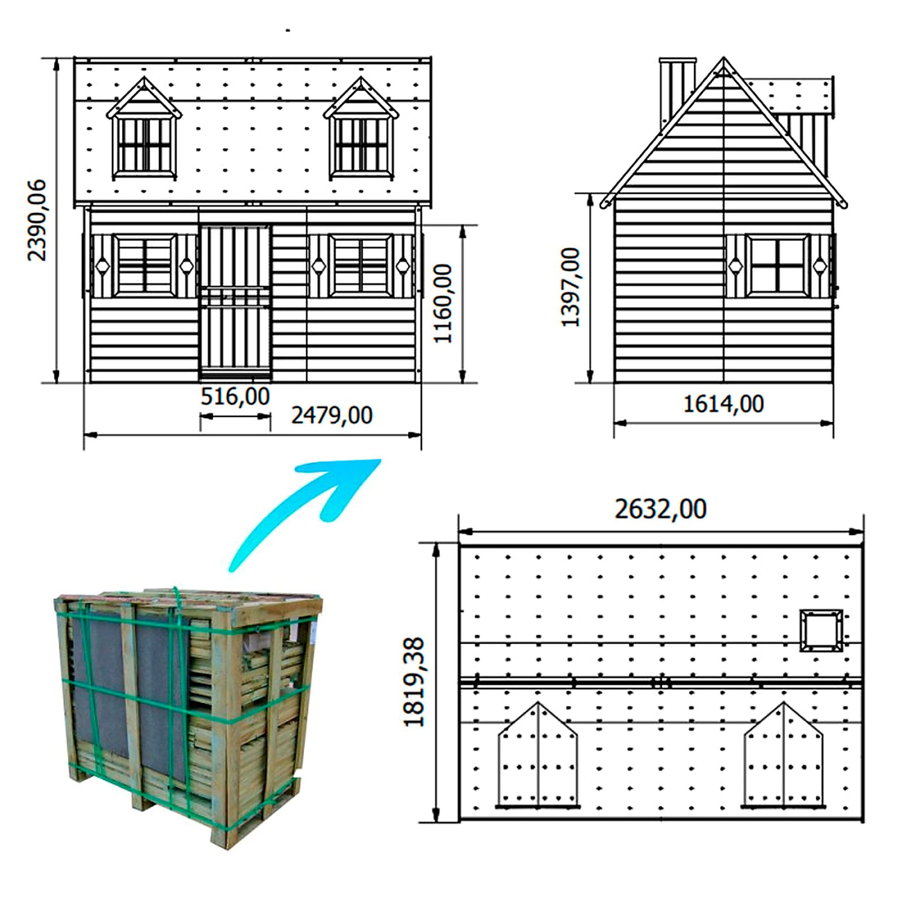 Zweistöckiges Kinderspielhaus Spielhaus 2,48×1,61x2,40 Spielhütt #3995