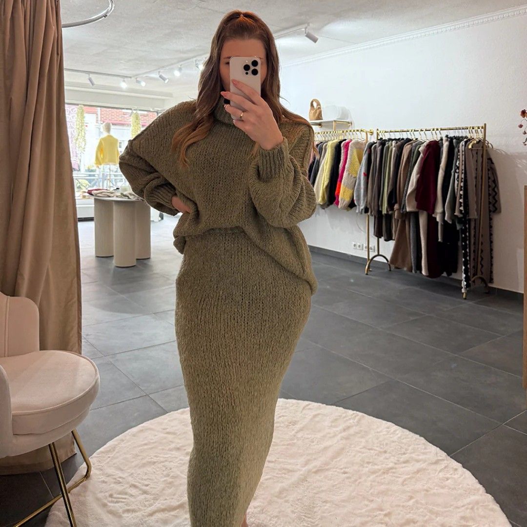 Zweiteiler Set Damen Josephine Dunkelgrün Frauen Pullover & Rock Onesize XS-XL
