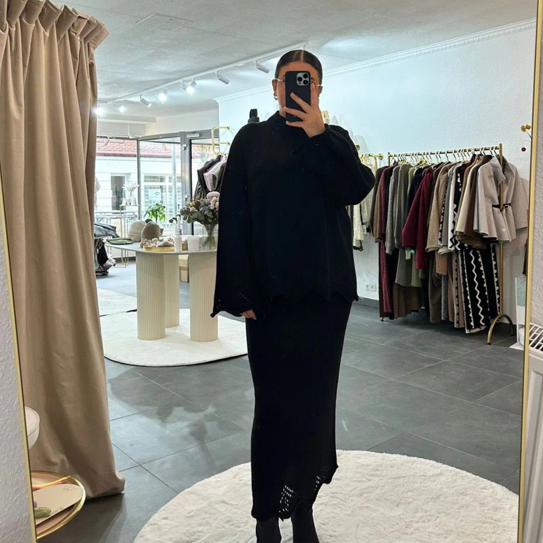 Zweiteiler Set Damen Lorena Scwarz Frauen Oberteil & Rock set Onesize XS-XL Frau
