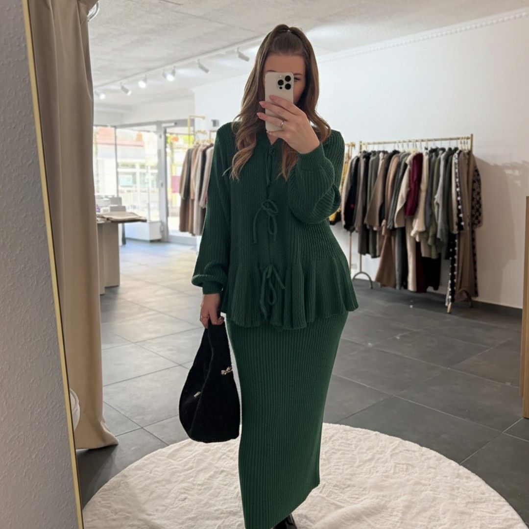 Zweiteiler Set Damen Madita Dunkelgrün Frauen Cardigan & Rock Set Onesize XS-XL