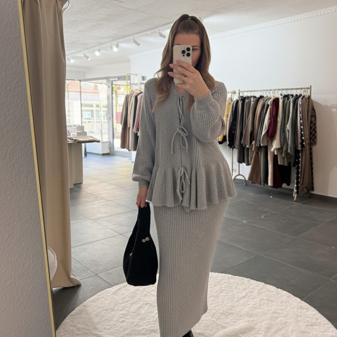 Zweiteiler Set Damen Madita Grau Frauen Cardigan & Rock Set Onesize XS-XL Frau