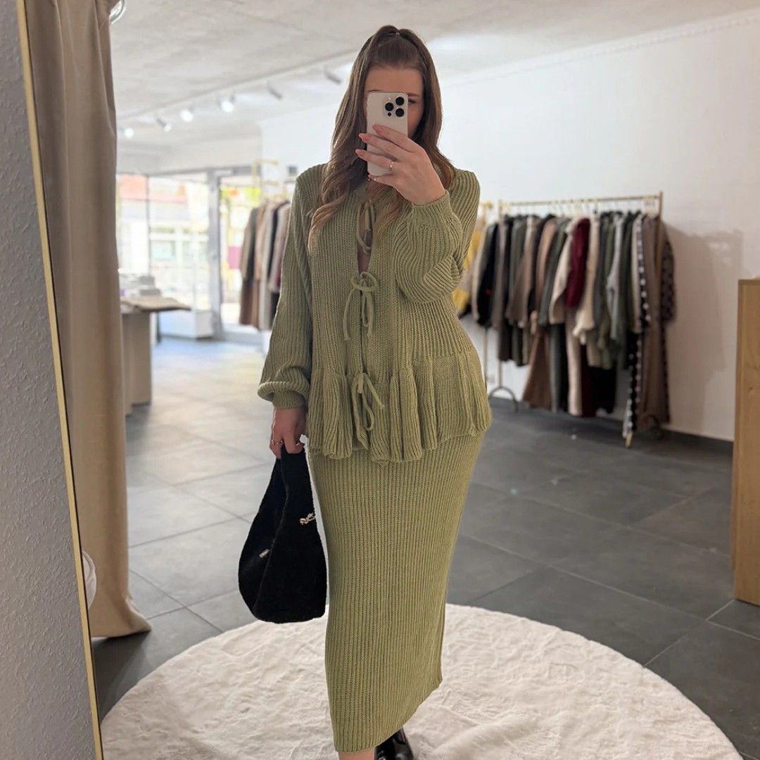 Zweiteiler Set Damen Madita Hellgrün Frauen Cardigan & Rock Set Onesize XS-XL