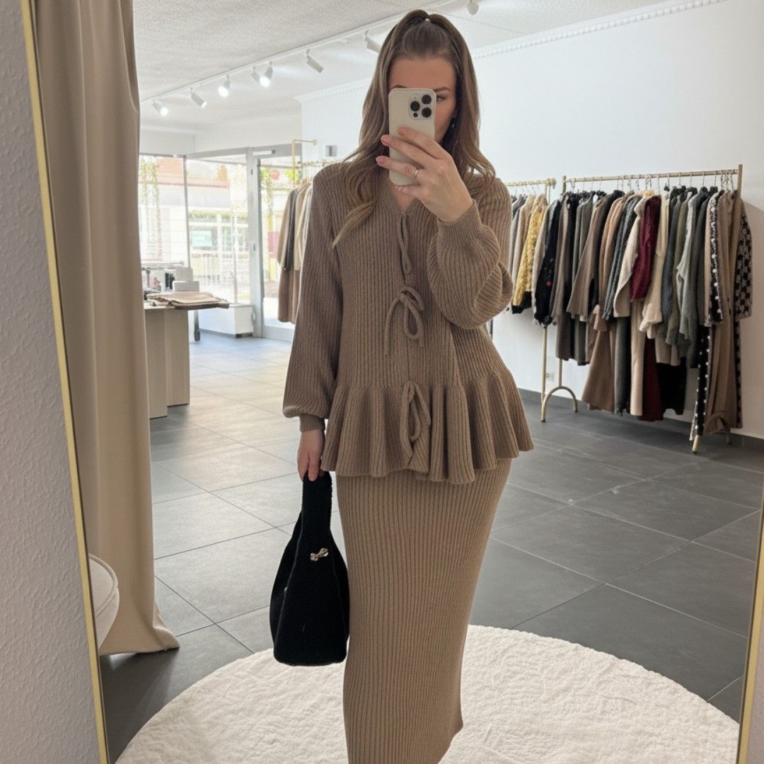 Zweiteiler Set Damen Madita Taupe Frauen Cardigan & Rock Set Onesize XS-XL Frau