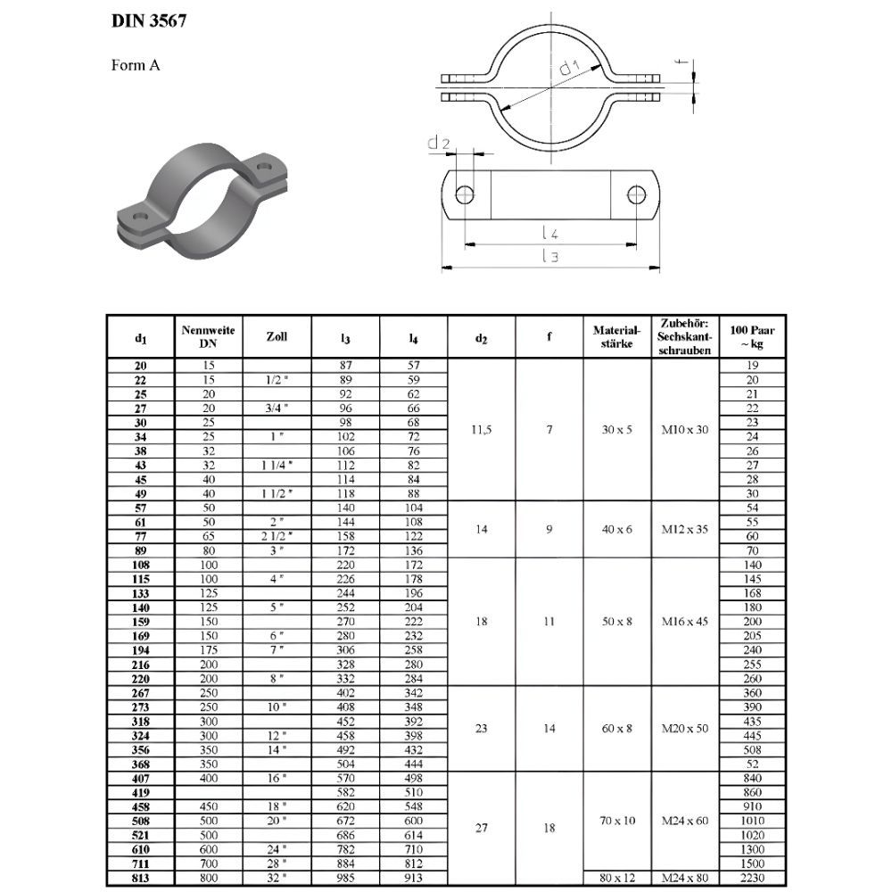 Zweiteilige Rohrschelle nach DIN 3567 Form A Edelstahl / (Durchmesser (innen)) 712 m
