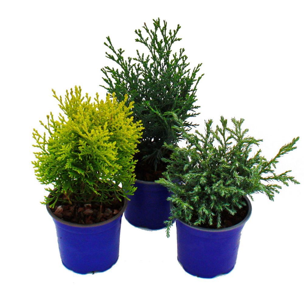 exotenherz Zwerg-Koniferen-Set mit 3 Pflanzen - kleine Nadelgehölze für Beet und Balkon - im