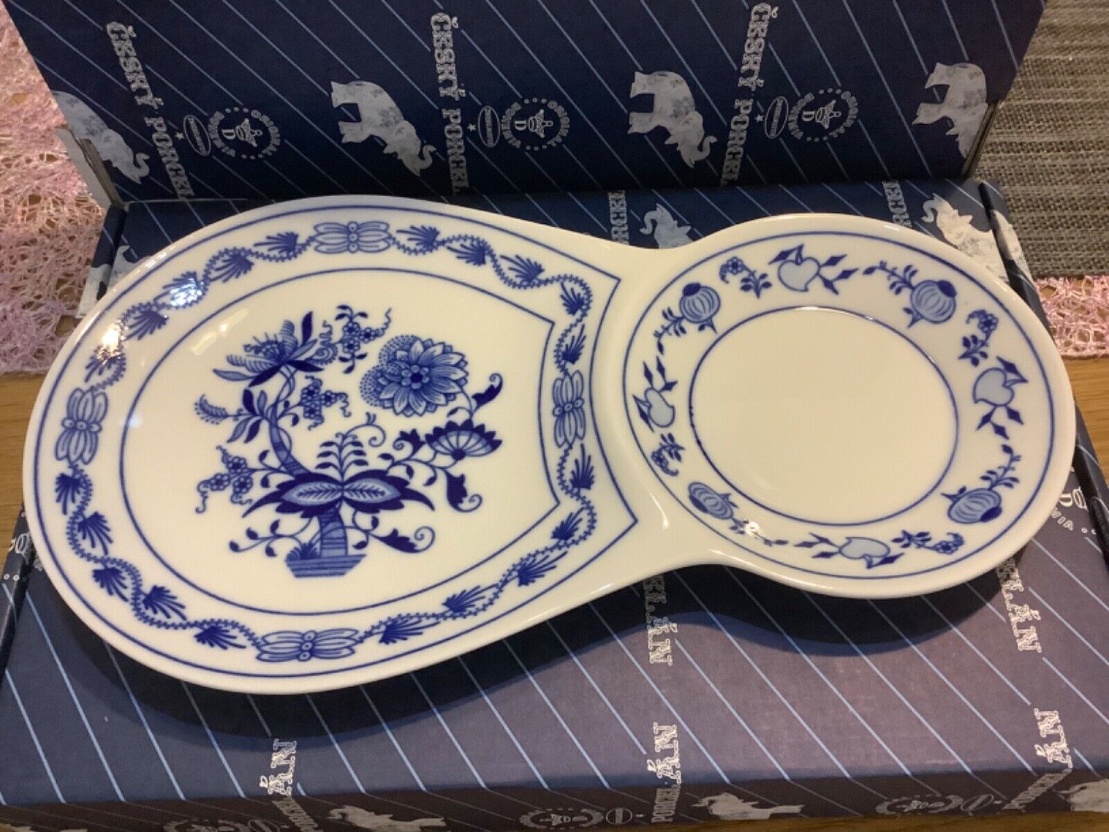Zwiebelmuster Bohemia Original Frühstückplatte 2-tlg 29,8 x 16,7 cm Porzellan