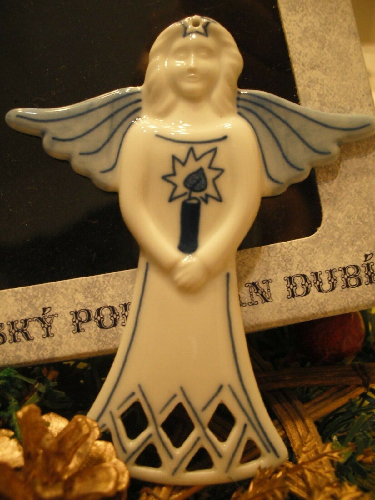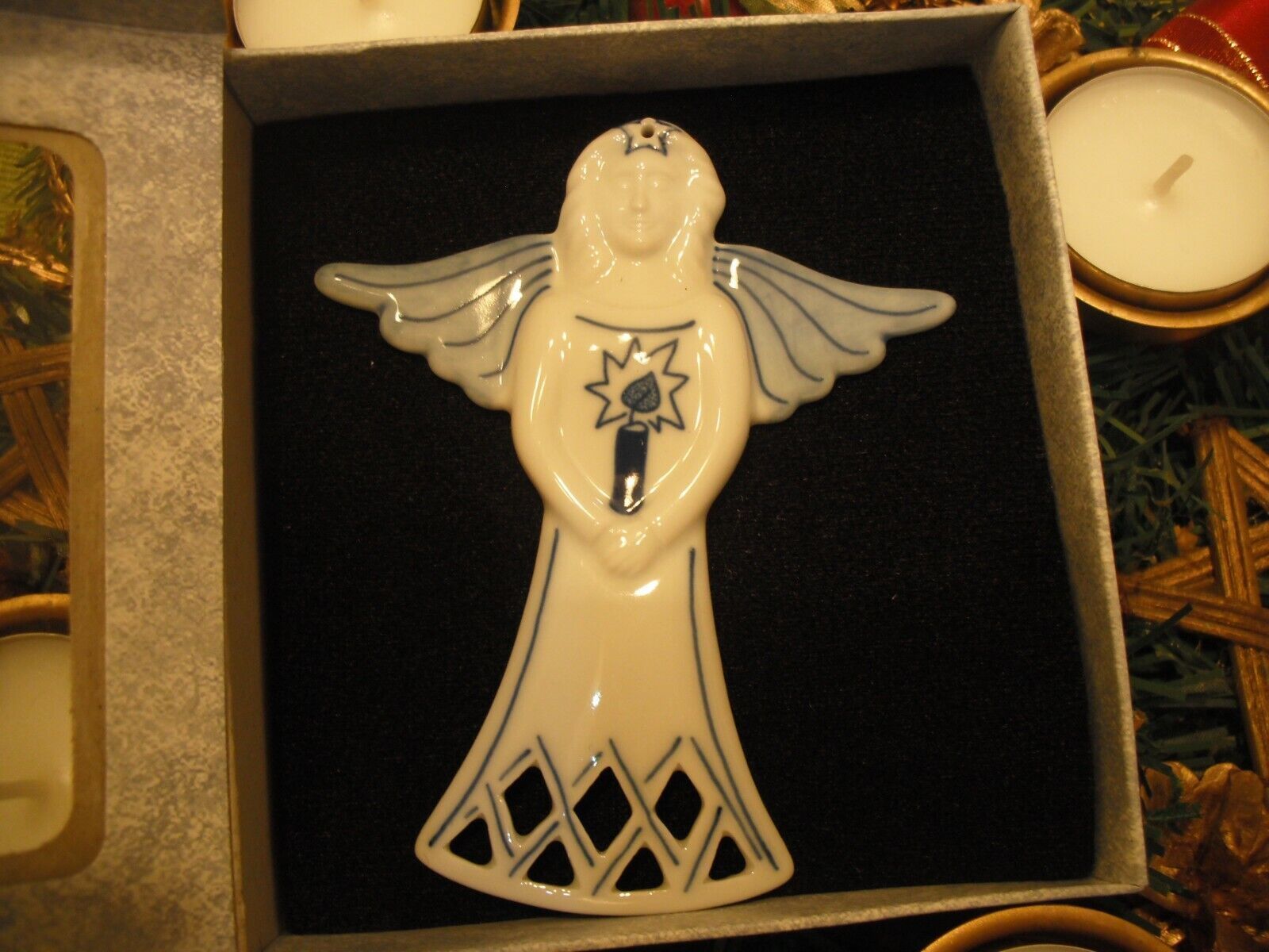 Zwiebelmuster Original Bohemia Christbaum Weihnachtsschmuck - Engel mit Kerze