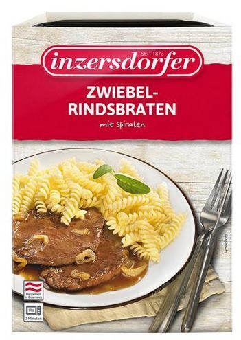 Inzersdorfer Zwiebelrindsbraten aus Fleischstücken zusammengefügt mit pikanter Sauce und Spiralnudeln 380 g - 4 Varianten Stückzahlen Produktdetails Inzersdorfer Zwiebelrindsbraten von Inzersdorfer 380 Gramm Packung Ein typisches Wiener Gericht: der Zwiebelrindsbraten - mit viel Zwiebeln, Saft und a