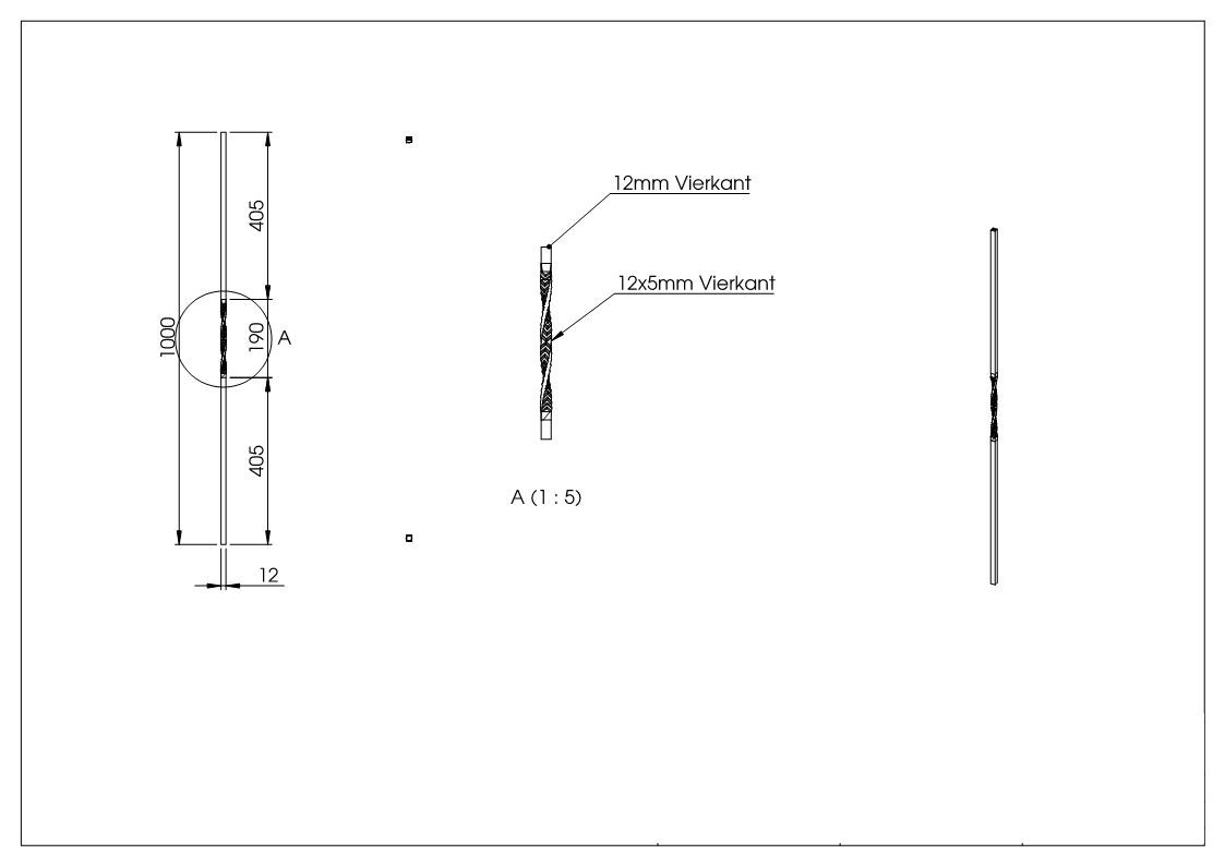 Zwischenstab | Länge: 900 mm | Material: 12x12 mm | glatt | Stahl S235JR, roh