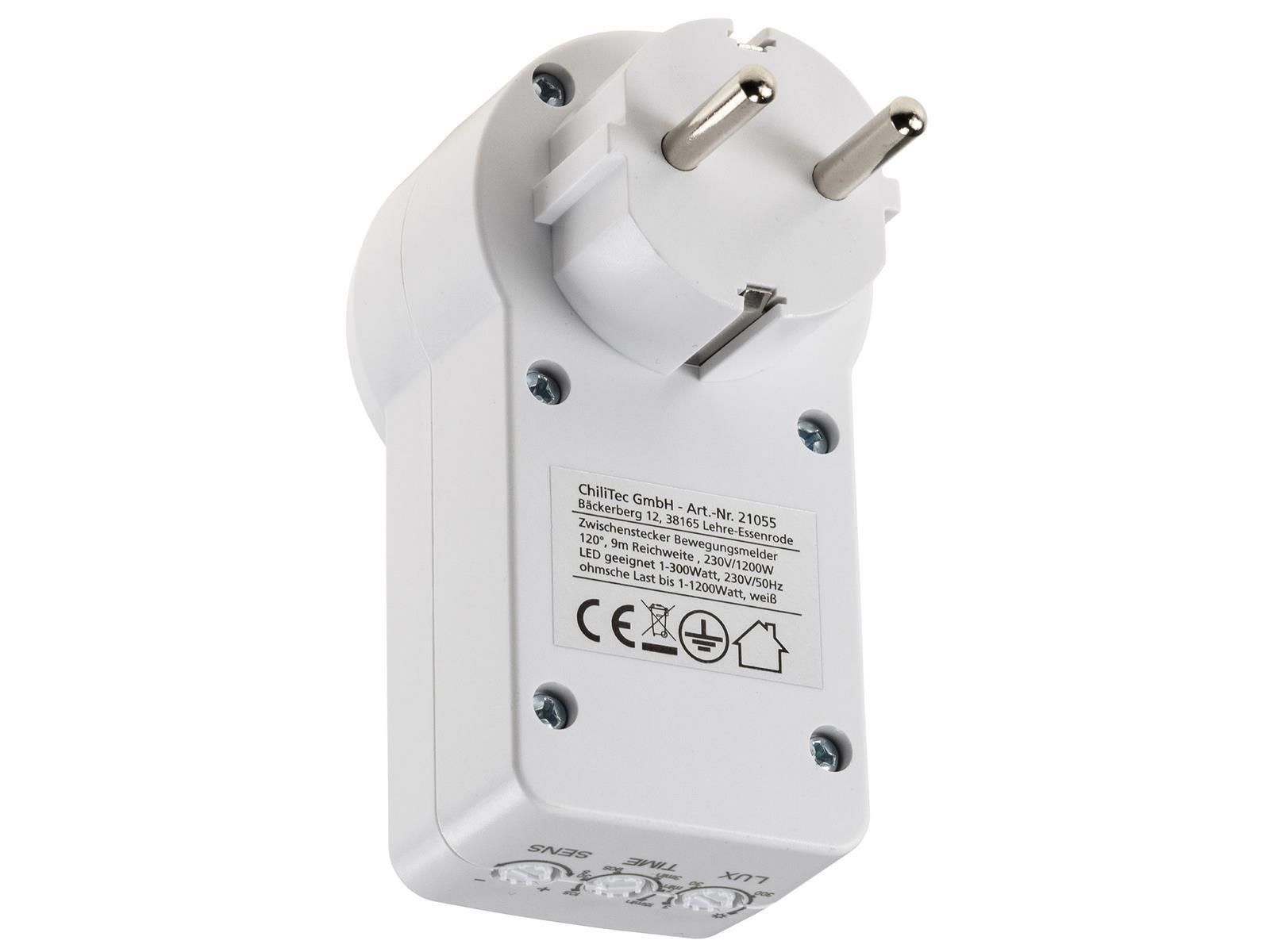 ChiliTec Zwischenstecker mit Bewegungsmelder 120°, 9m Reichweite , 230V/1200W, weiß