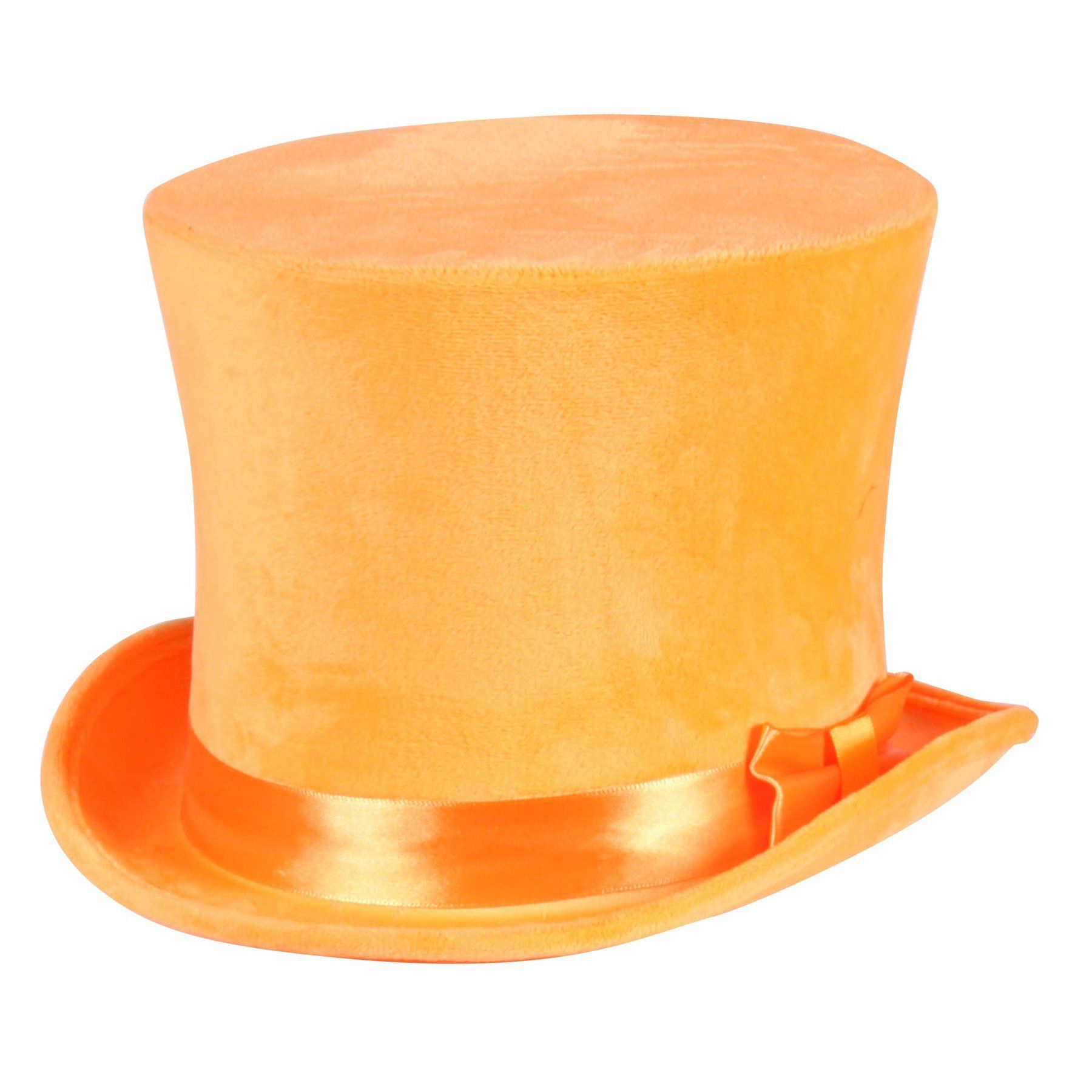 Zylinder Hut Flair samtiger Zylinderhut neon orange Chapeau Karneval Fasching