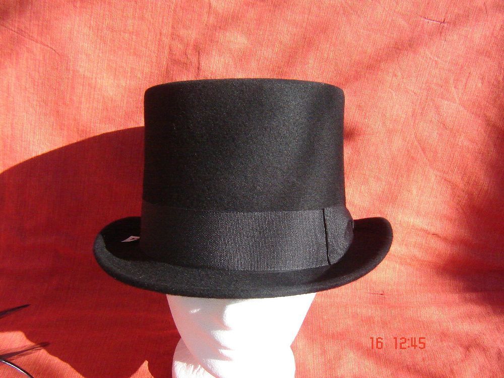 . klassisch eleganter Zylinder gute Wollfilzqualität der Zylinder ist 13 cm hoch und hat eine Randbreite von ca 4,5cm in Farbe schwarz sehr schön verarbeitet mit Stretch Innenband lieferbare Größen 55 , 56 , 57 , 58 oder 59 cm Kopfumfang, Bitte nach Kauf entweder in der Kaufabwicklung oder in einer