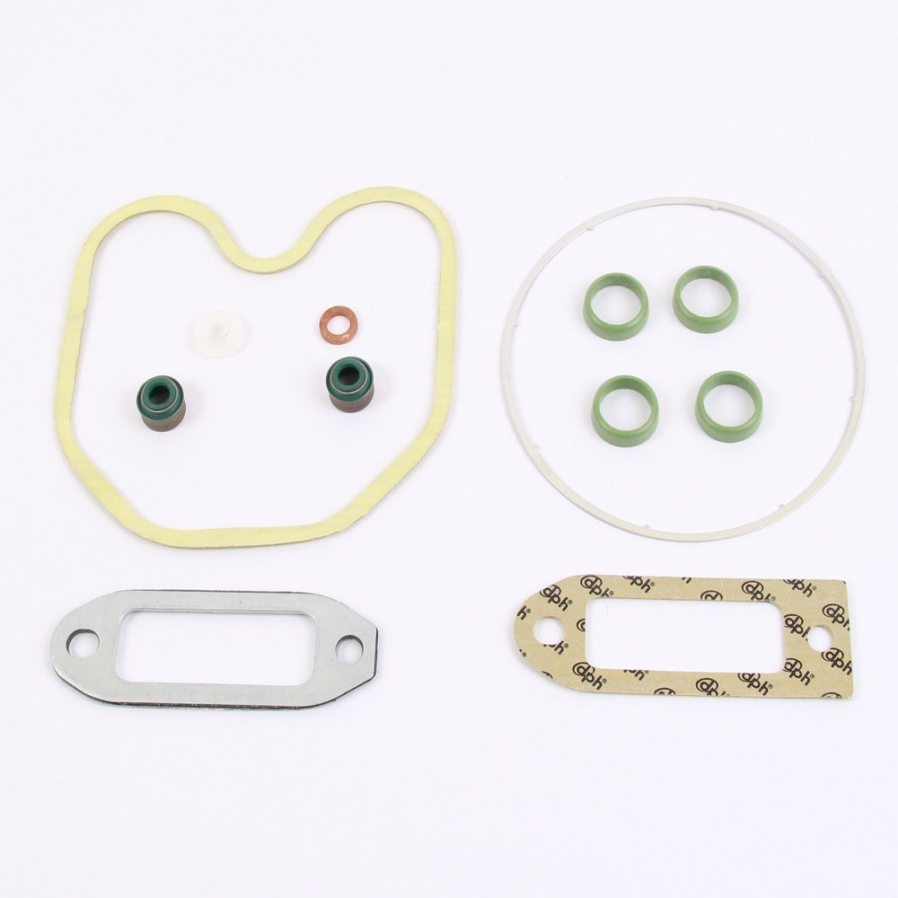 Zylinderkopfdichtungssatz passend alle Deutz KHD 914 bestehend aus: 1x Ventildeckeldichtung inkl. Kunststoffscheibe 2x Ventilschaftdichtung 4x Stößelstangendichtung grün 1x Zylinderfußdichtring 1x Krümmerrohrdichtung 1x Ansaugrohrdichtung 1x Kupferinge weitere Vergl.-Nr. 02931426 02931477 02937521 0