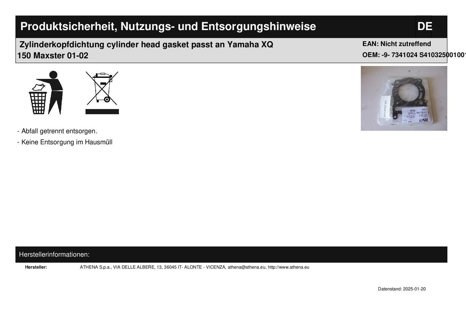 Zylinderkopfdichtung cylinder head gasket passt an Yamaha XQ 150 Maxster 01-02