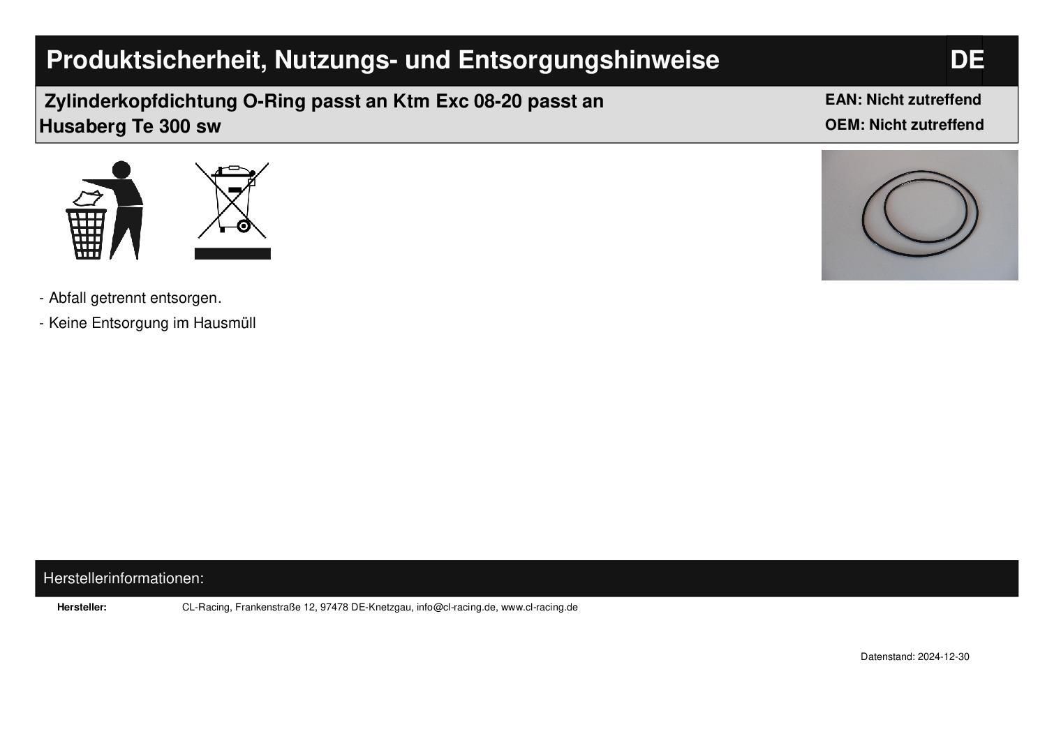 Zylinderkopfdichtung O-Ring passt an Ktm Exc 08-20 passt an Husaberg Te 300 sw