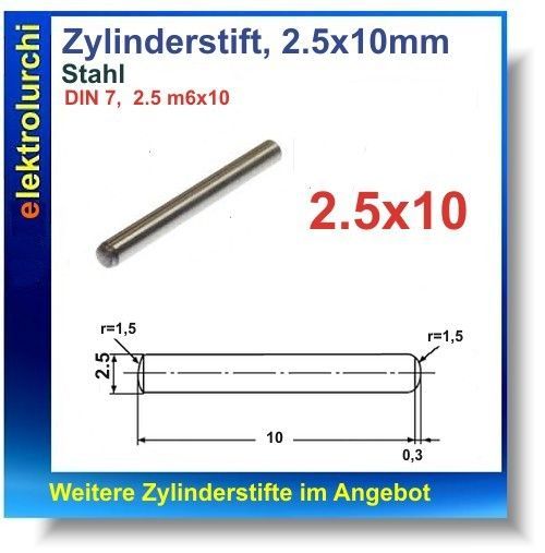 Zylinderstift 2.5x10mm, Stahl, DIN 7 , Passstifte, Passtift, 10St.