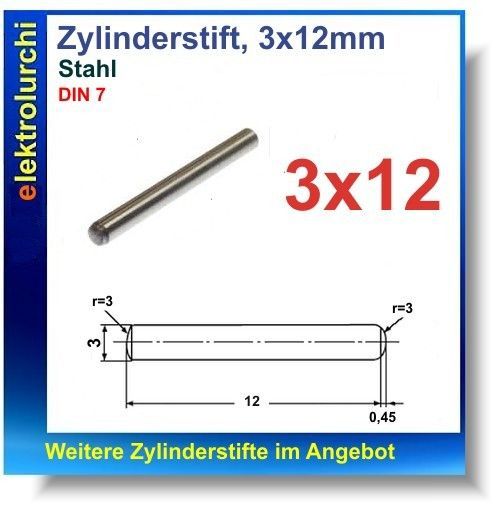 Zylinderstift 3x12mm, Stahl, DIN 7 , Passstifte, Passtift, 10St.