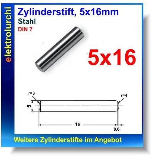 Zylinderstift 5x16mm, Stahl, DIN 7 , Passstifte, Passtift, 10St.