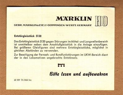 Märklin H0 M-Gleis Anleitung 5112 Entkupplung Entkupplungsgleis 68 504 TAN 0462 ka