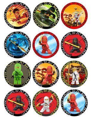 • Ninjago Essbar Lego 12 Muffin Zuckermasse Tortenbild Tortenaufleger n01