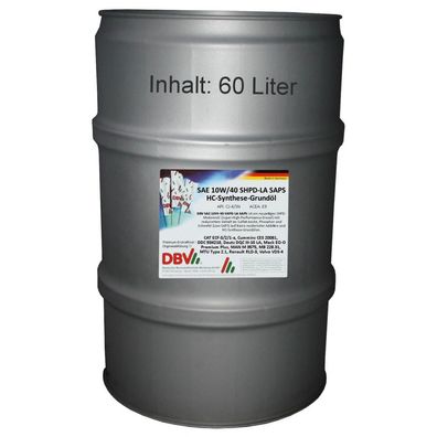 DBV SAE 10W/40 SHPD/FDL–Ganzjahresöl (teilsynthetisch) 60-Liter-Fass