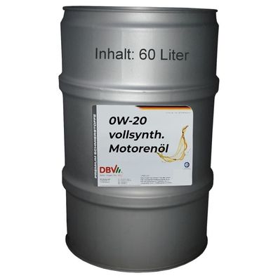 DBV 0W/20 vollsynthetisches Motorenöl 60-Liter-Fass