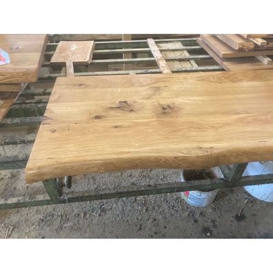 Eiche, Tischplatte, verleimt, astig, rustikal, 180x90x4,5 cm, beidseitig Baumkante, g