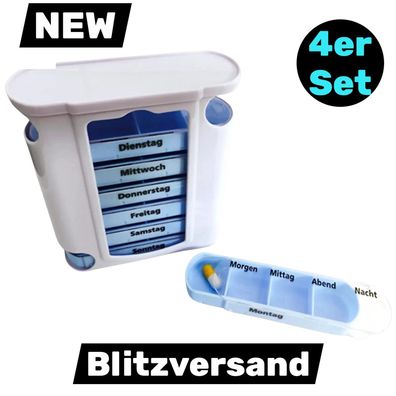 4x Pillenbox Tablettenbox Pillendose Tablettendose Pillenturm 14 Tage 4 Tageszeiten