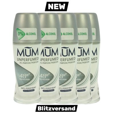 MUM Deo Roll On Damen Frauen ohne Parfum 48h Schutz 5x 50ml SALE (€95,56 / L)