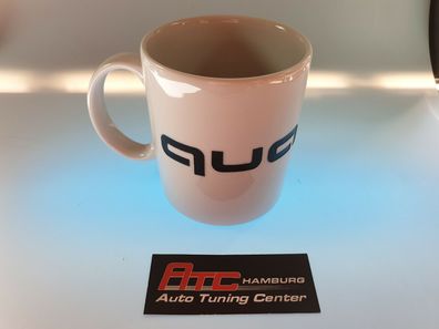 Audi Quattro Kaffee / Coffe Becher Cup Tasse Porzellan in weiß, Logo schwarz