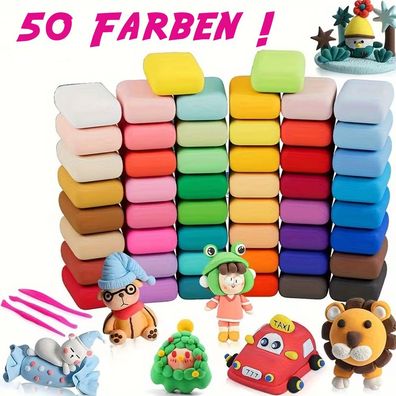 50 Farben Modelliermasse lufttrocknend schnelltrockend Kinderknete Bastelgeschenk NEU