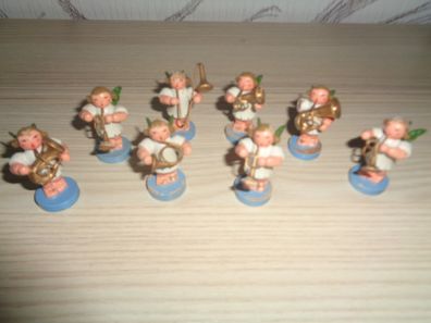 Erzgebirge Volkskunst- 8 kleine Engel mit Musikinstrumenten-Kapelle