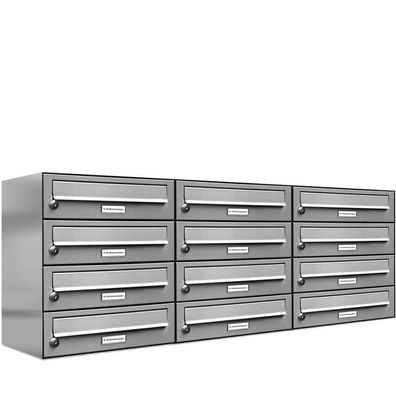 12er Premium V2A Edelstahl Briefkasten Anlage Außen Wand Design Postkasten 3x4 L