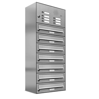 7er Premium V2A Edelstahl Standbriefkasten Anlage mit Klingel Postkasten 1x7