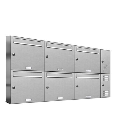 6er Premium Edelstahl Briefkasten Außen mit Klingel Rechts Wand Postkasten 3x2