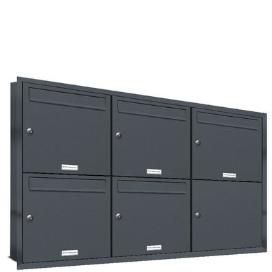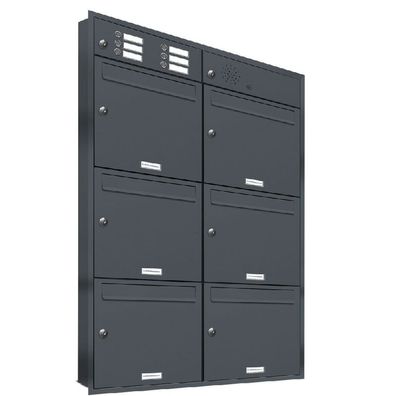 6er Premium Briefkasten Unterputz Anthrazit mit Klingel 6 Fach Postkasten 2x3 S