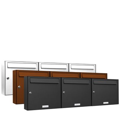 3er Premium Edelstahl Briefkasten Anlage für Außen Wand Design Postkasten 3x1