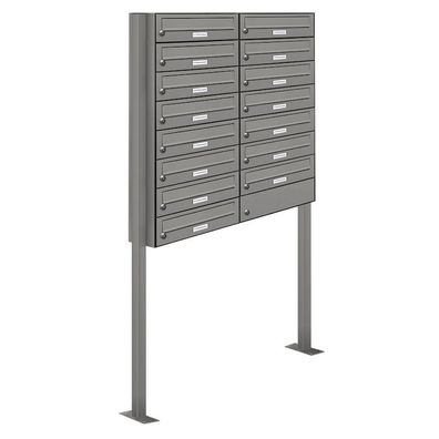 15er Premium Standbriefkasten Aluminiumgrau RAL 9007 freistehend Postkasten 2x8