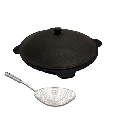 ROBARI Kazan Gusseisen 15 Liter Kasan mit Pfannendeckel aus Gusseisen Wok Asia