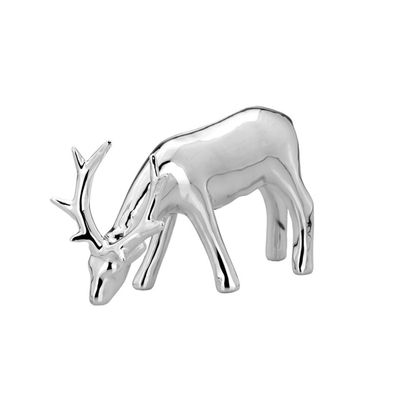 Deko Rentier 15.5 x 9 cm Porzellan silberne Dekofigur Hirschfigur Weihnachtsdeko