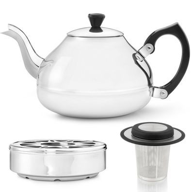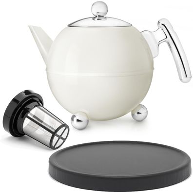 Teekanne 1.1 Liter beige doppelwandig Kanne aus Edelstahl Filter & Untersetzer