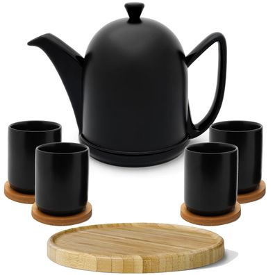 Teekanne schwarz 1 L matt Keramik 4 Teebecher Untersetzer 10tlg. Kannenuntersatz