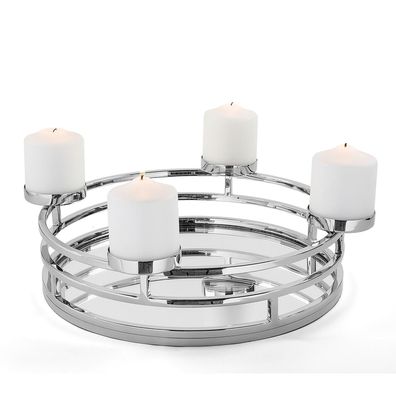 Fink 4-flg. Kerzenhalter Ø 48 cm für Stumpenkerzen rund Kerzenkranz Spiegelglas