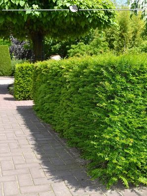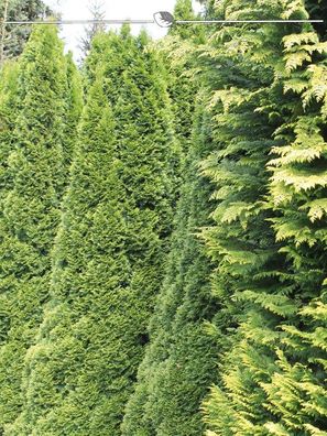 Verkauf von Heckenpflanzen wie Lebensbaum Thuja Brabant & Smaragd, Gemeine Eibe Taxus baccata und Kirschlorbeere.