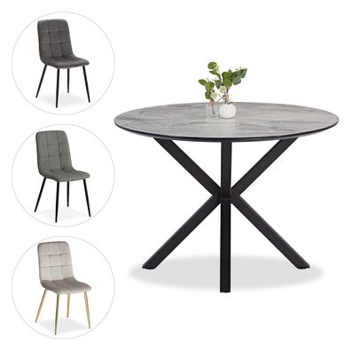Esstisch mit 2 oder 4 Stühlen Set Essgruppe Polsterstühle Samt Leinen Grau Esszimm