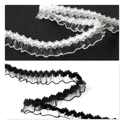 Rüschengummi, Gummiband, BORTE, SPITZE, BAND, Organza,27 mm, Weiß, Schwarz