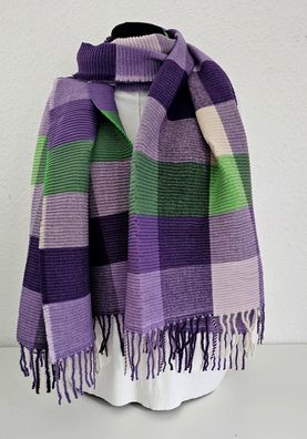 XXL Winterschal Tuch Schal Scarf Fransen weich lang kariert Lila Flieder Beige Grün