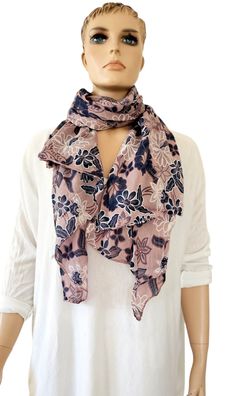 Italy Blogger Schal Tuch Halstuch Seide/Baumw. asymetrisch Blumenprint Altrosa/Blau