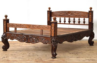 Bengalisches Bett Antik geschnitzt Alt Vintage Bengal Bed Indien Teak Holz 190x140