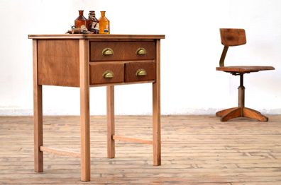 Beistelltisch Eiche Buche Massiv Antik Alt Vintage Schubladenschrank Shabby Loft
